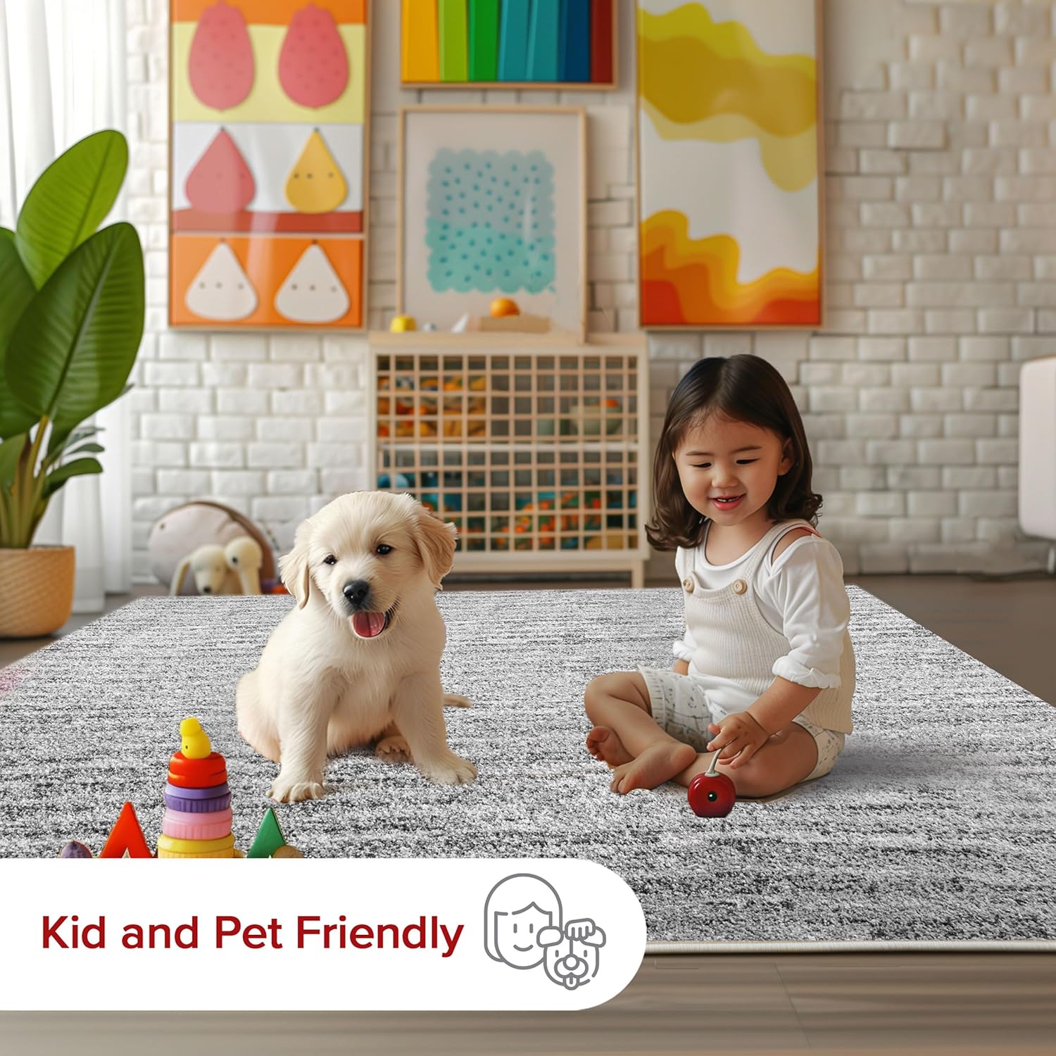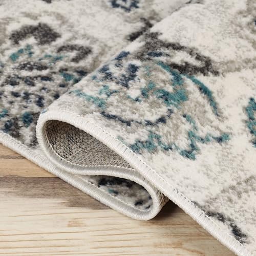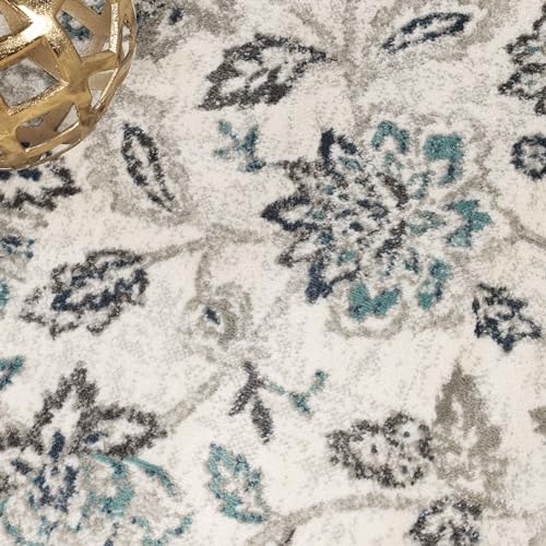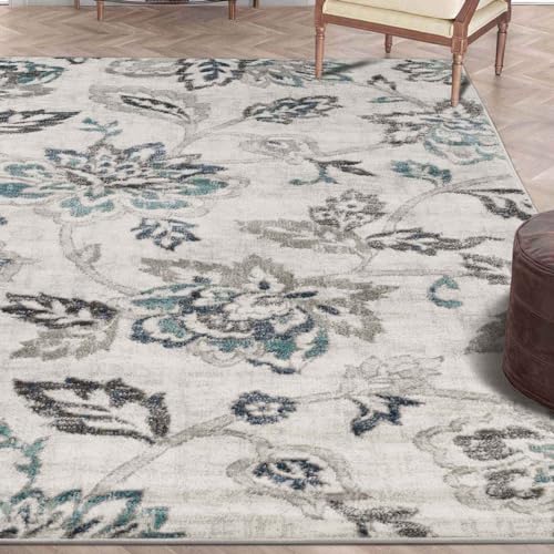 Superior Indoor Large Area Rug for Hallways, Entry, Office, Living/Bedroom, Hardwood, Tile, Floor Cover, Plush Carpet Cover, Modern Farmhouse Floral Decor, Jacobean Collection, 7' x 9', Blue Ivory