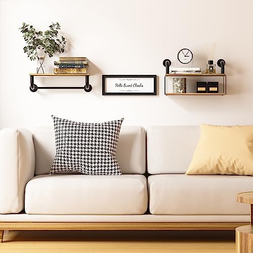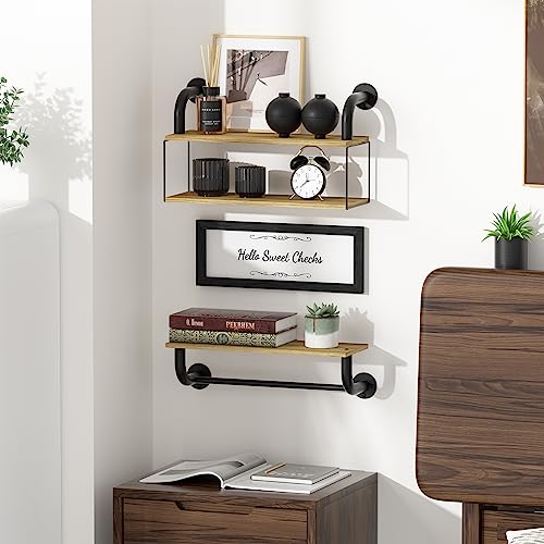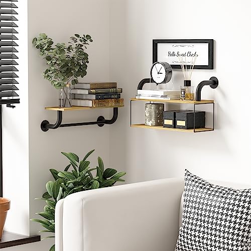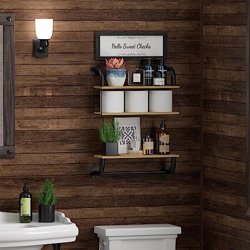 Farmhouse Bathroom Decor Floating Shelves for Wall Decor, Bathroom Shelves Over Toilet, Industrial Pipe Shelves Wall Mounted with Towel Bar, Rustic Wall Shelf for Living Room Bedroom