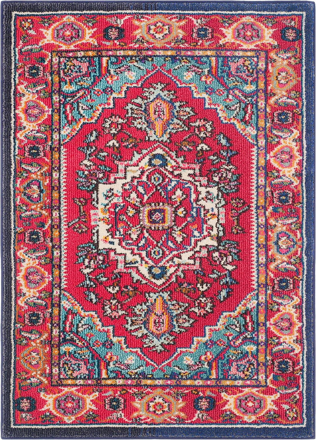 SAFAVIEH Monaco Collection Accent Rug - 3' x 5', Red & Turquoise, Boho Oriental Medallion Design, Non-Shedding & Easy Care, Ideal for High Traffic Areas in Entryway, Living Room, Bedroom (MNC207C)