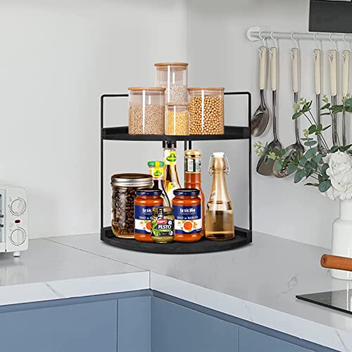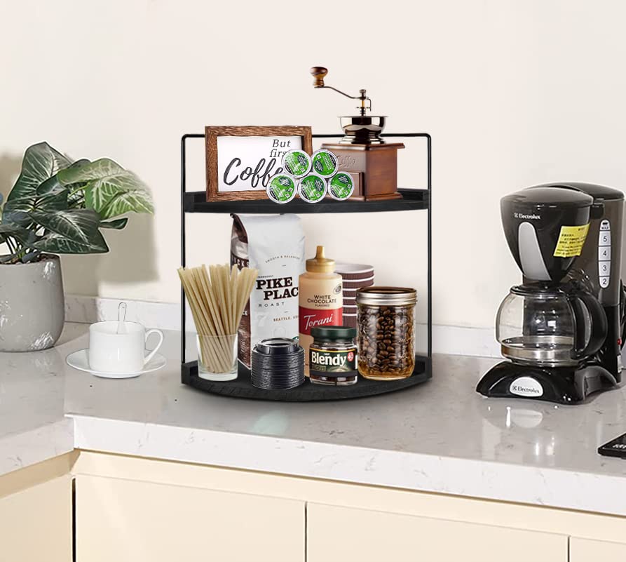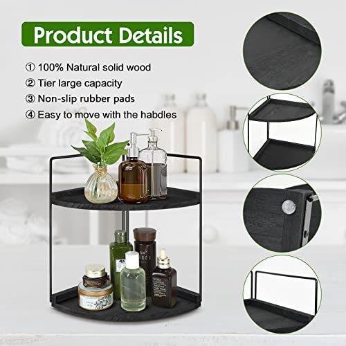 2-Tier Bathroom Counter Organizer, Wood Bathroom Organizer and Storage, Bathroom Corner Shelves for Counter Vanity Organizer, Bathroom Organizer Countertop for Bathroom Accessories, Perfume Organizer