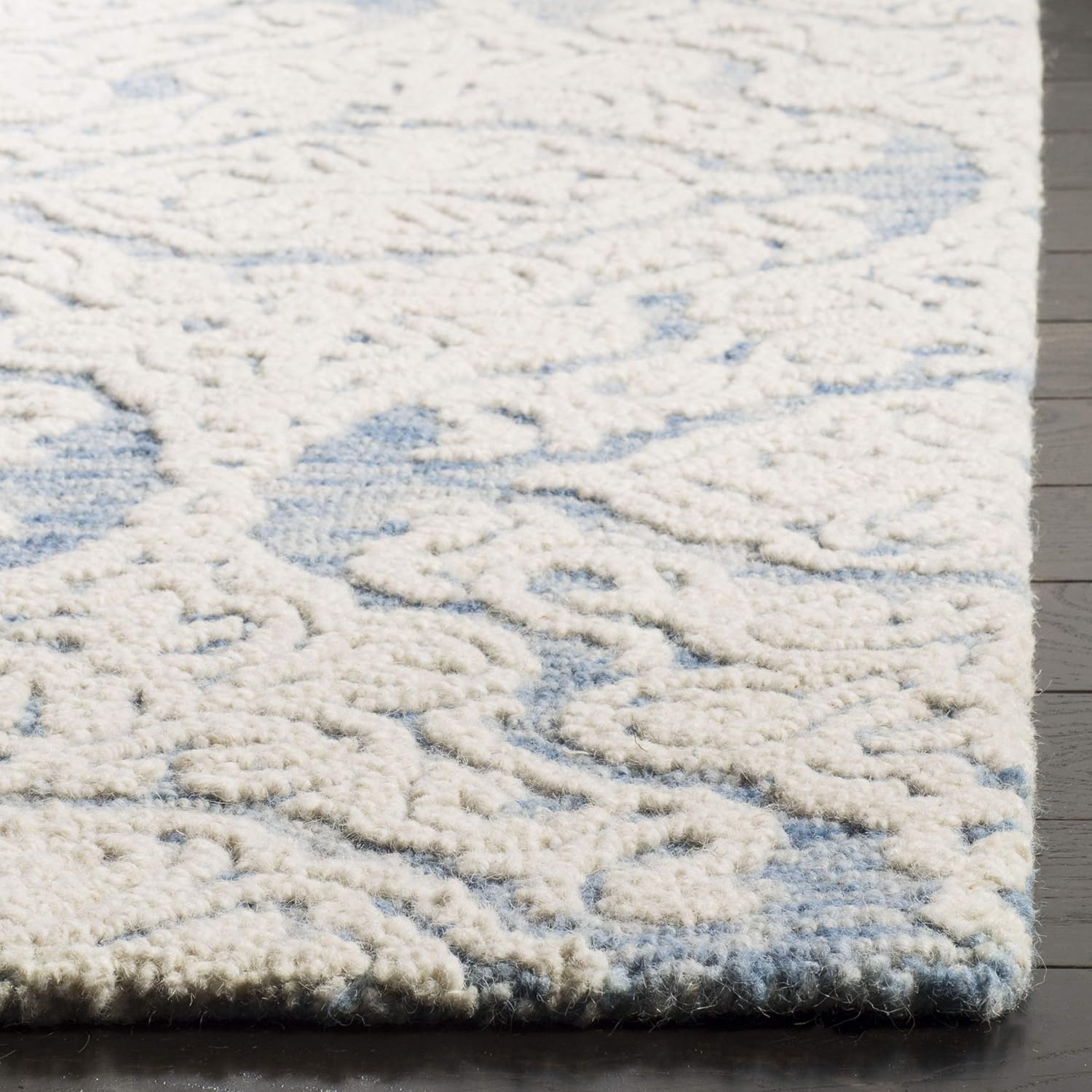 SAFAVIEH Blossom Collection 2' 3" x 12' Blue/Ivory BLM112M Handmade Premium Wool Entryway Foyer Living Room Kitchen Runner Rug