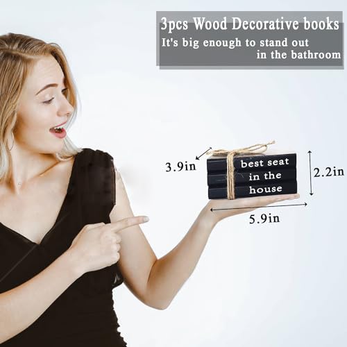 Farmhouse Bathroom Decor - Funny Rustic Wooden Decorative Books for Restroom Shelf Decor - Black Bathroom Decorative Accent for Guest Bathroom