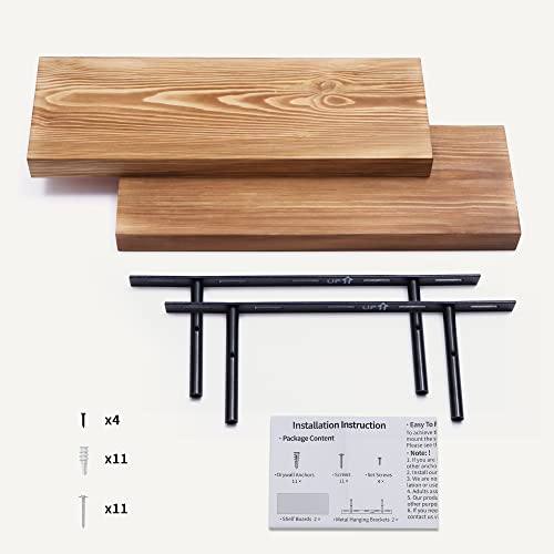 Fun Memories Handcrafted European Pine Floating Shelves - Natural Rustic Wooden Wall Shelf Set of 2-24 Inch Storage Shelf Display Shelf for Kitchen Bathroom Living Room Bedroom Farmhouse - Carbonized