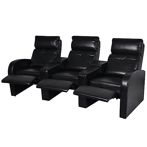 3-Seater Home Theater Recliner Sofa Black Faux Leather,Modern Reclining Sofa: Comfort and Style for Your Space Living Room Furniture