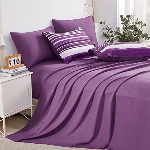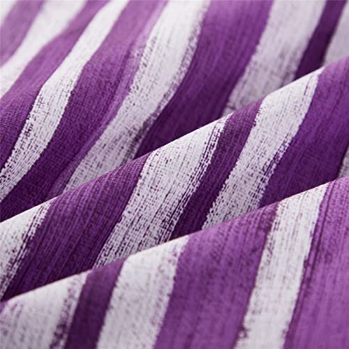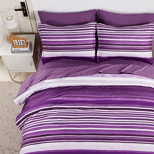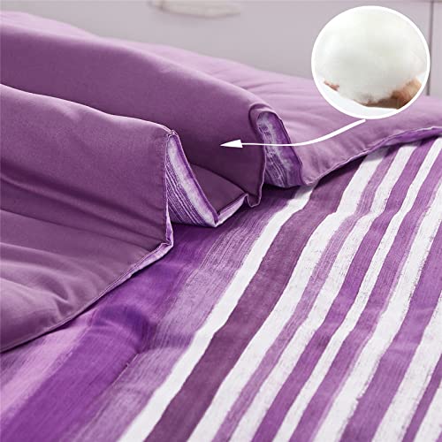 KAKIJUMN 7 Piece Bed in a Bag Stripe Comforter Set Full Size, White and Purple Patchwork Striped Comforter and Sheet Set, All Season Soft Microfiber Complete Bedding Sets(Purple,Full)