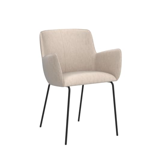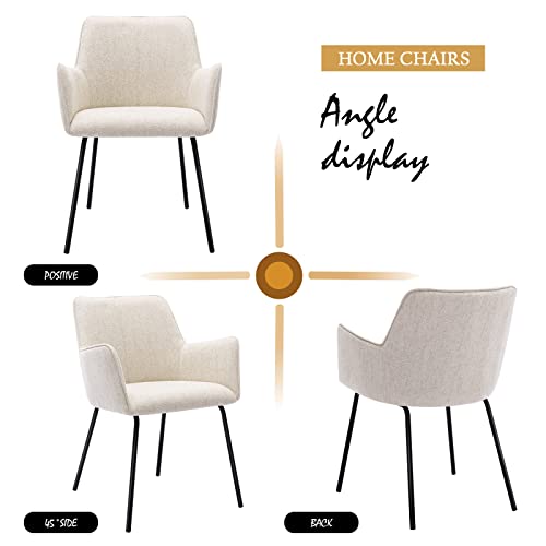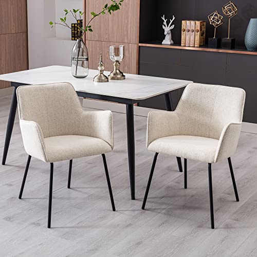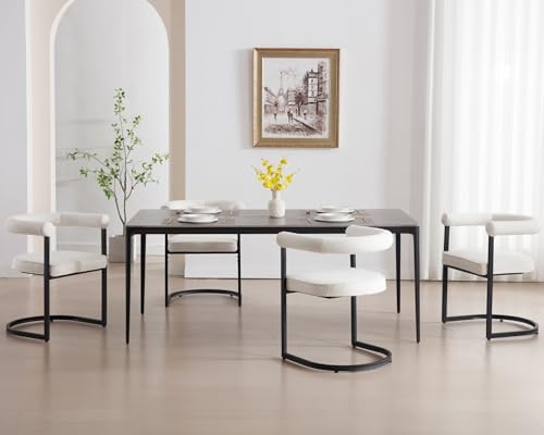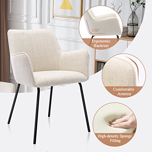 Modern Dining Chairs Set of 4, Upholstered Dining Chair with Arms, Kitchen Chair with Curved Back, Sherpa Accent Chair with Black Metal Legs for Kitchen, Living Room, White