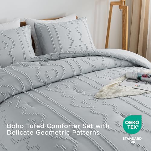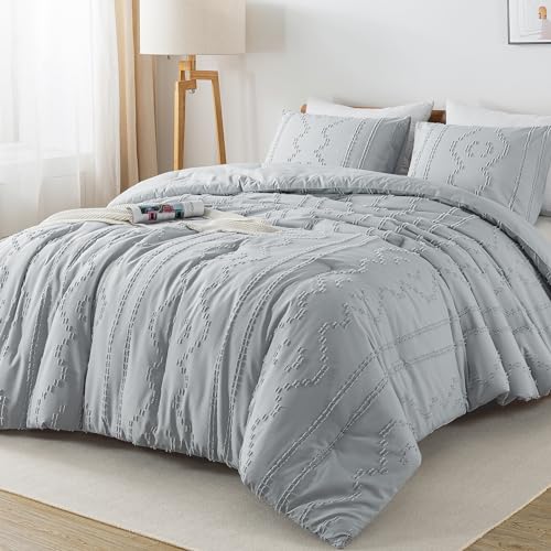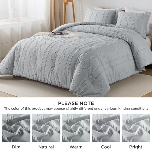 Andency Comforter King Size Set Khaki, 3 Pieces Boho Tufted Summer Bedding Comforters Sets for King Bed, Farmhouse Soft Fluffy Bed Set (104x90In Comforter & 2 Pillowcases)
