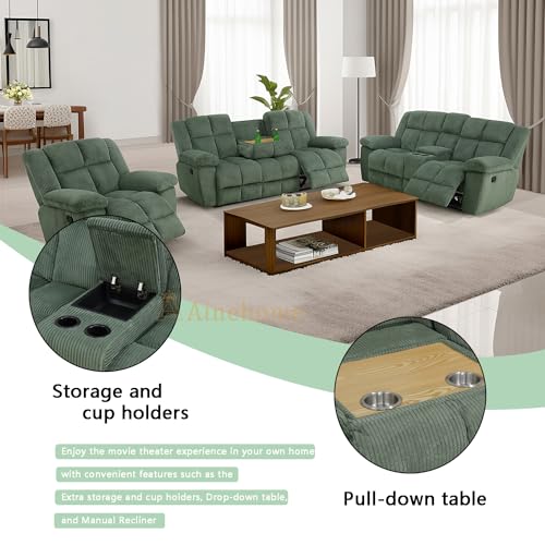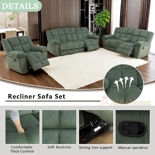 A Ainehome Manual Recliner Sofa Set, Corduroy Recliner Chair, Modern Loveseat Sofa, Modern Reclining Sofa Couch and Recliner Couches for Living Room/Office(Sofa, green)