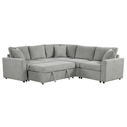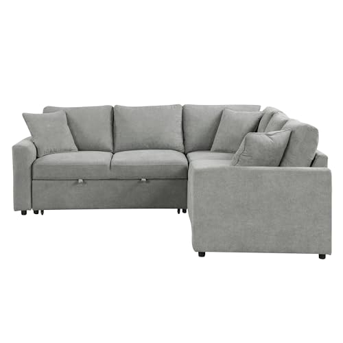 U Shaped Convertible Sectional Sofa Pull Out Bed with Left Hand Chaise , Deep Seat Reversible Sleeper Corner Couch with Stoage and Detachable Backrest, Corduroy Upholstered Sofabed for Living Room