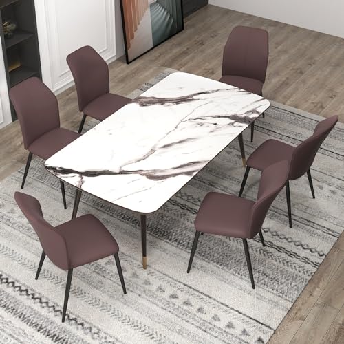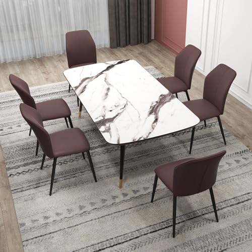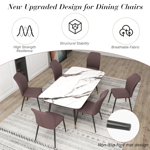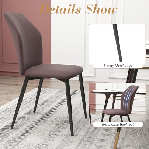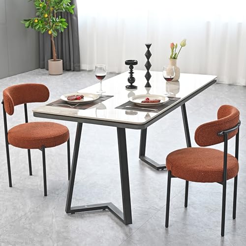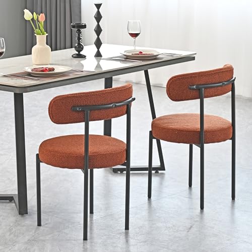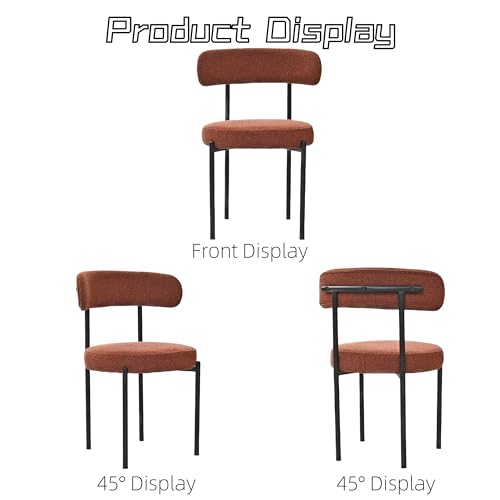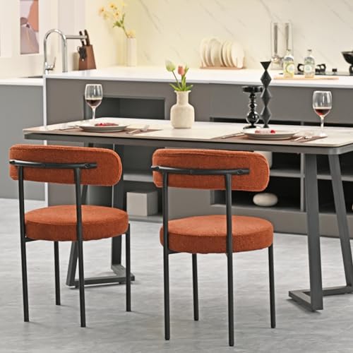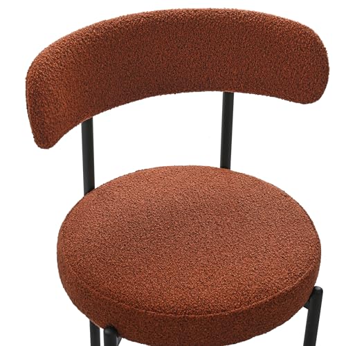 Dining Chairs Set of 2, Round Upholstered Kitchen Boucle Chairs, Mid-Century Modern Curved Back Dining Room Side Chair for Living Room Dining Room Kitchen Restaurant Café (Brown)