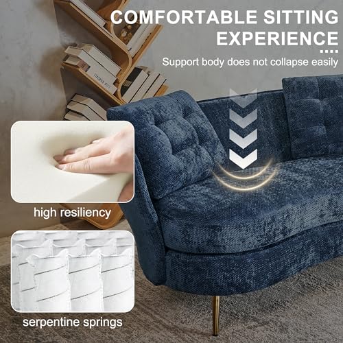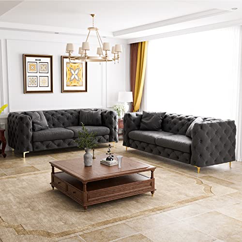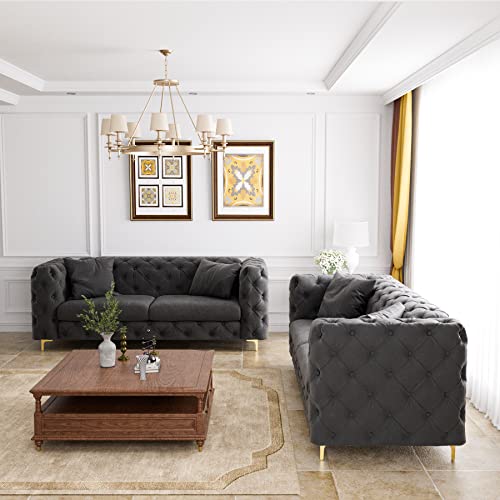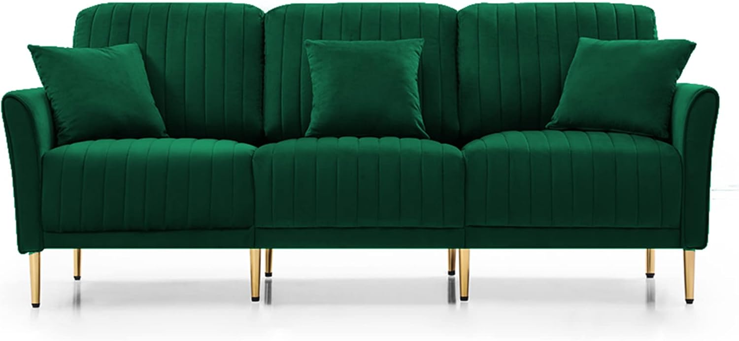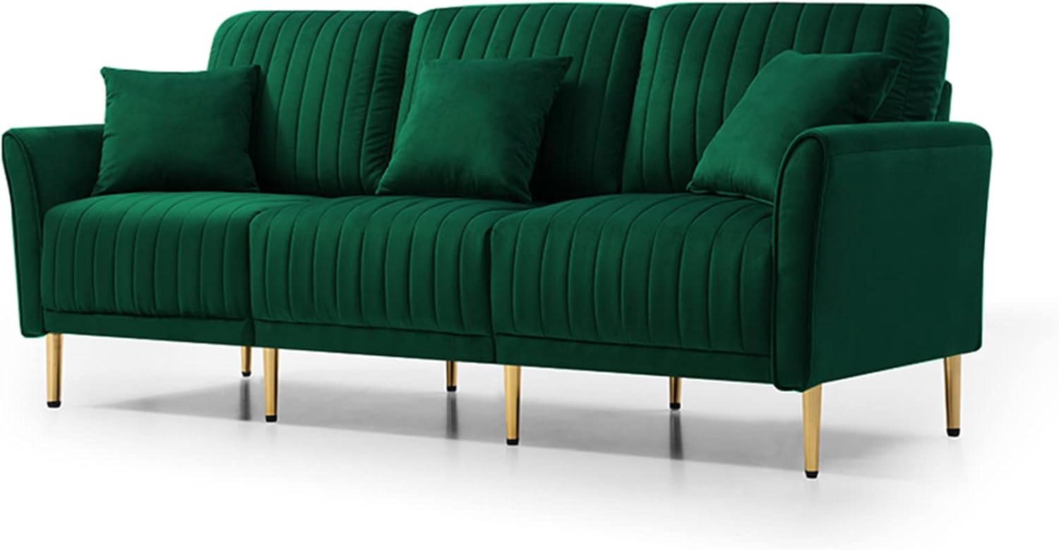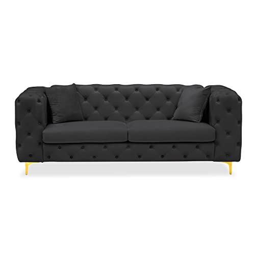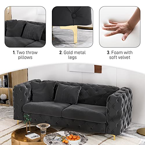 OUYESSIR Modern Velvet Sofa for Living Room, 75 Inches Long Tufted Couch, Upholstered Sofa with 2 Pillows Wide Armrest and Metal Legs for Living Room Bedroom Office (Orange)