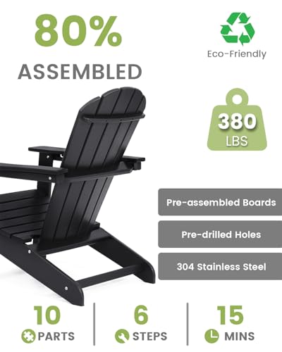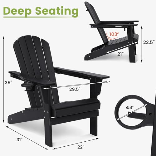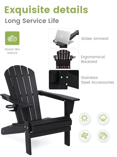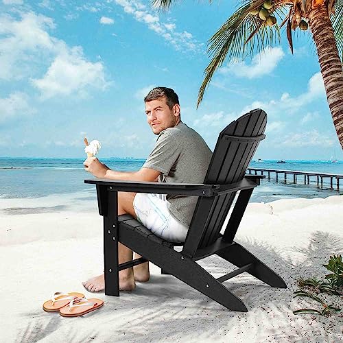 Adirondack Chair,Set of 4, Weatherproof Outdoor Fire Pit Chair, Perfect for Patio, Porch, Deck, and Garden, Black