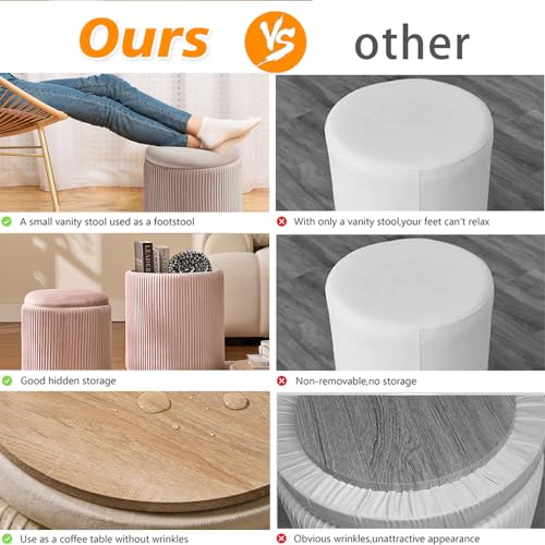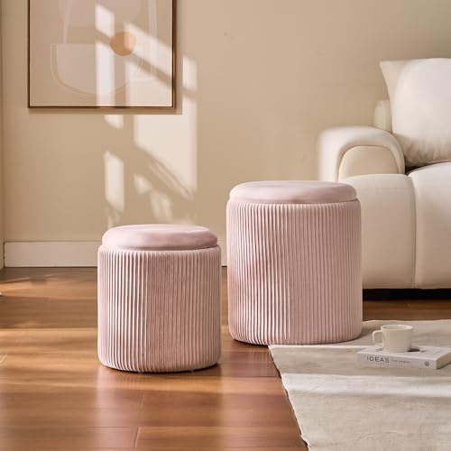Round Set of 2 Ottoman with Storage-Upholstered Velvet Vanity Stool for Makeup Multifunctional Ottomans Coffee Table Padded Seat Foot Rest for Living Room&Bedroom (Pink)