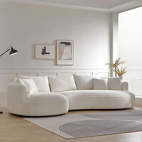 124.8" Leather Curved Sofa Living Room Cloud Couch, Modern Upholstery Boucle Sofa, Comfy Lazy Modular Sectional Sofa with Pillows for Bedroom Apartment Mid-Century Right Hand Facing, Grey
