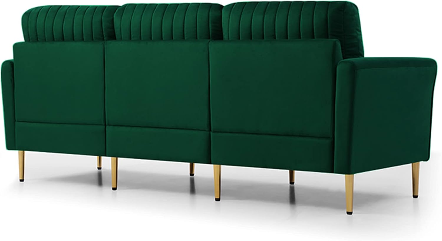 Green Velvet Modular Corner Sofa Reversible Left Hand Facing Sofa Chaise with Ottoman