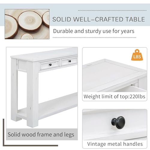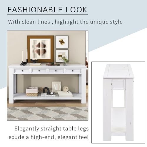 Long Console Table with Drawers, Wood Entryway Table with Bottom Shelf, Sofa Table, Modern Sofa Table for Entryway, Hallway, Living Room (Tan)