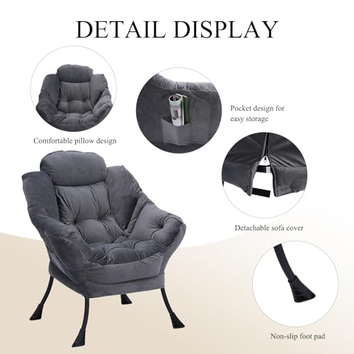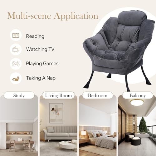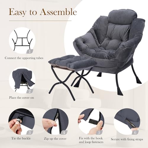 Modern Cotton Fabric Lazy Chair with Ottoman, Accent Contemporary Lounge Single Leisure Upholstered Sofa Chair Set with Armrests and a Side Pocket for Living Room & Bedroom (Dark Brown)