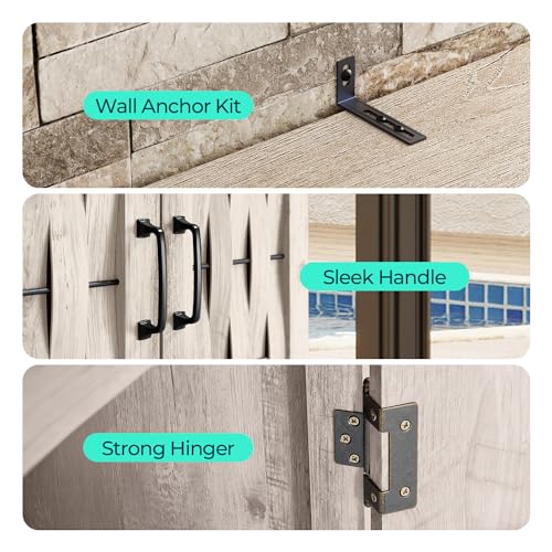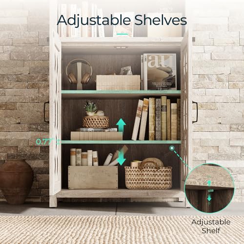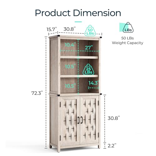 LINSY HOME Farmhouse Bookshelves and Bookcases with Doors, Floor Standing 5-Shelf Display Storage Shelves, 72 in Tall Storage Cabinet for Home Office, Living Room (Light Brown)