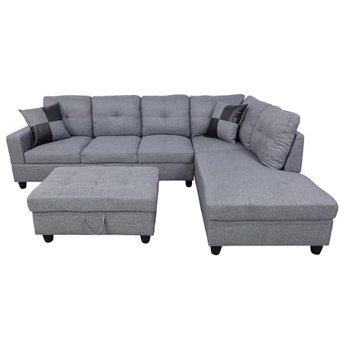 95 Inch L Shaped Sectional Sofa with Storage Ottoman, Right Facing Chaise Longue, Reversible Backrest w/ 2 Cup Holders, Semi PU Synthetic Leather Tufted Cushions, for Living Room, Ginger