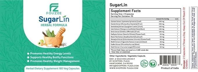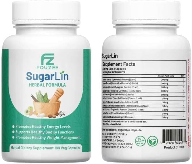 SugarLin Herbal Support Supplement — Normalizes Wellness & Manages Cravings W/Ayurvedic Herbs; Fenugreek, Turmeric, Gymnema Sylvestre —Additive-Free Daily Supplement (180 Capsules, 30 Day Supply)