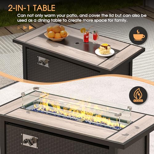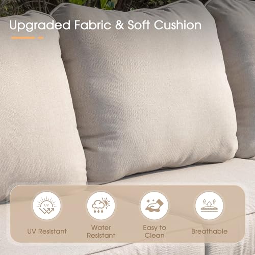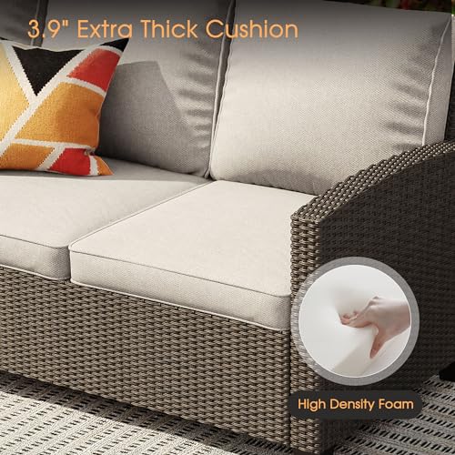 VICLLAX 6 Pieces Patio Furniture Set with 45-Inch Firepit Table, Outdoor Wicker Conversation Set with 3-seat Sofa, 4 Single Wicker Sofas and Metal Top Fire Pit Table for Garden, Poolside, Backyard