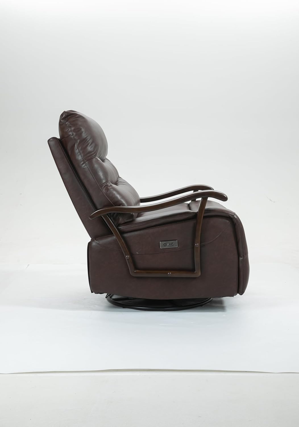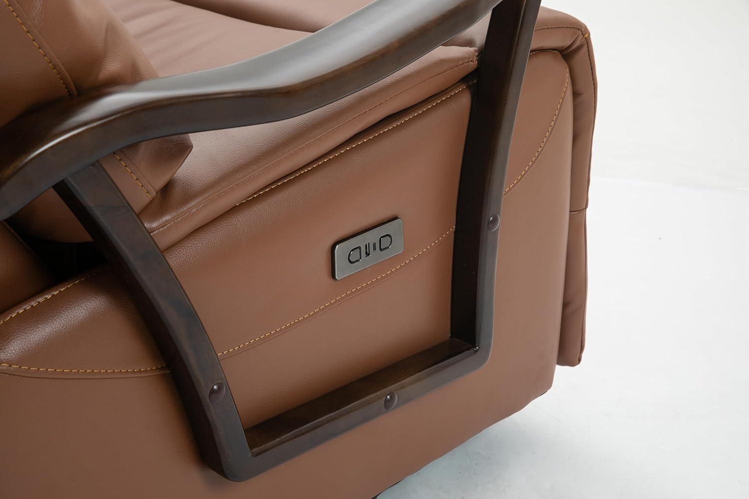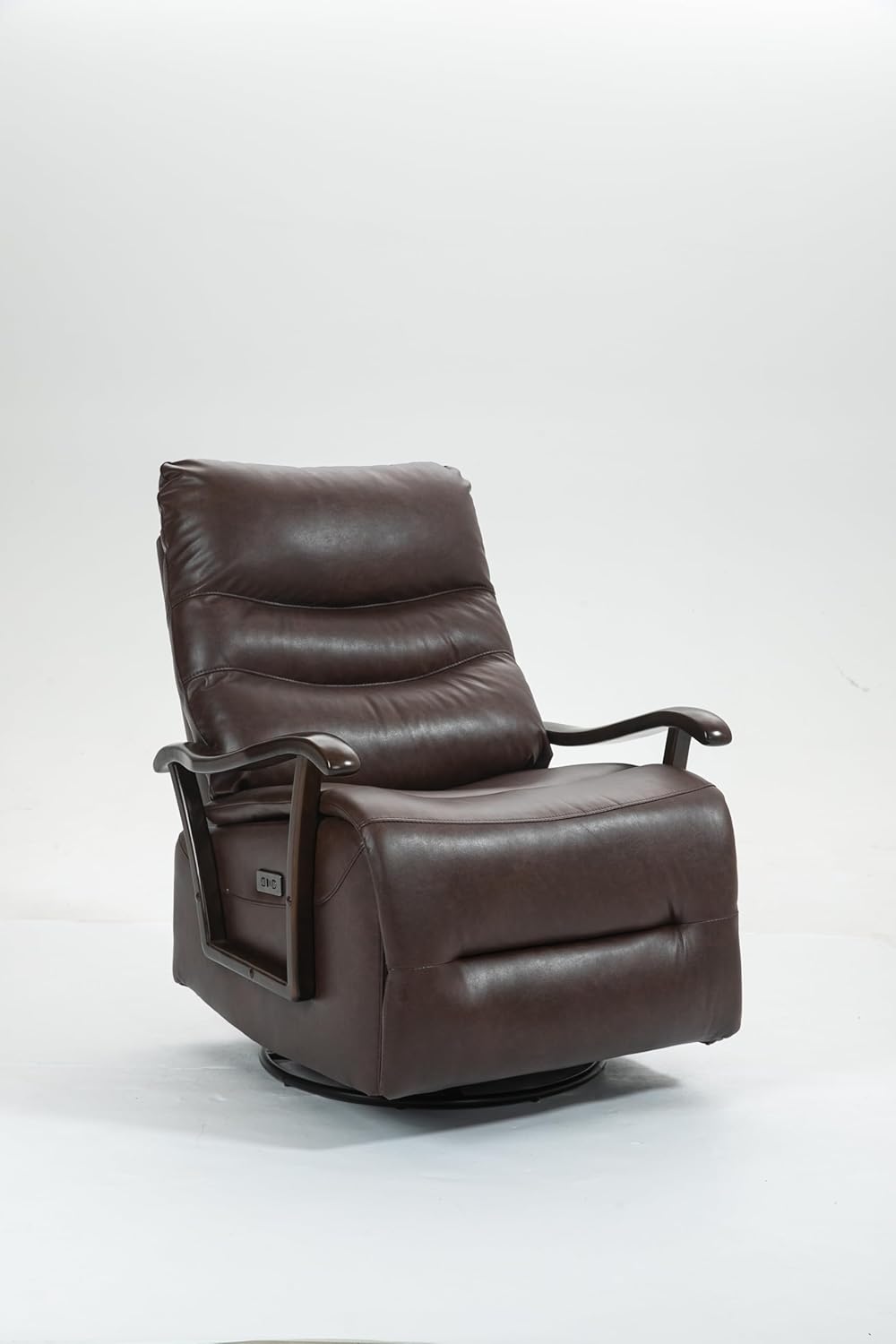 Swivel Rocker Recliner Power Glider Chair with Solid Wood Armrests - Extra Wide Reclining Sofa Chair Upholstered Faux Leather Living Room Single Sofa 350 lbs (Brown)