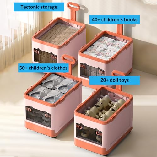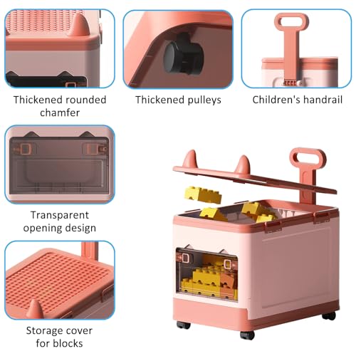 Collapsible Kids Storage Box with Building Base for Lego Toy Organizer Bins with Lids and Wheels Stackable Toys Chest Containers Building Block Bricks Storage Case for Children