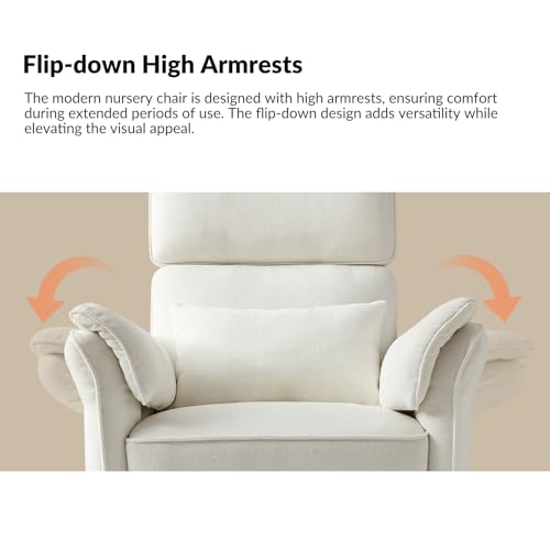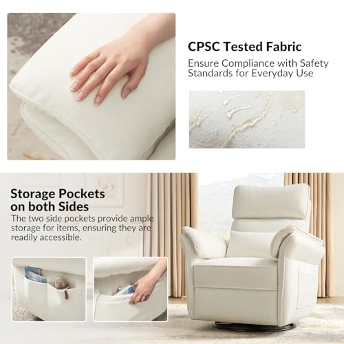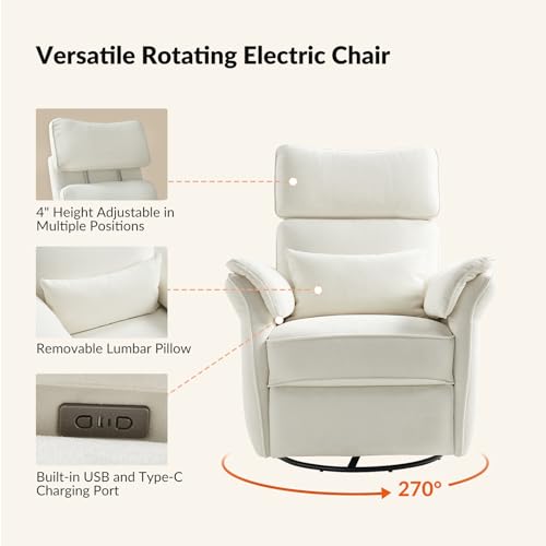 HULALA HOME Glider Recliner Nursery Chair with Adjustable Armrests & Headrest, Modern Power Recliner with USB Port & Storage Bags, Swivel Rocker Recliner for Nursing Room Bedroom, Grey