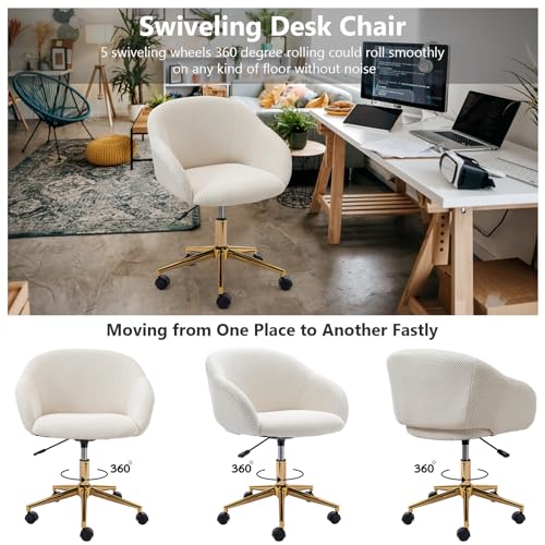 Hommoo Desk Chair with Wheels and Arms Velvet Comfortable Desk Chair for Home Office Height Adjustable Vanity Chair Modern Task Chair Computer Desk Chair Green