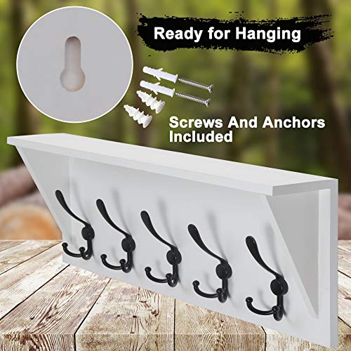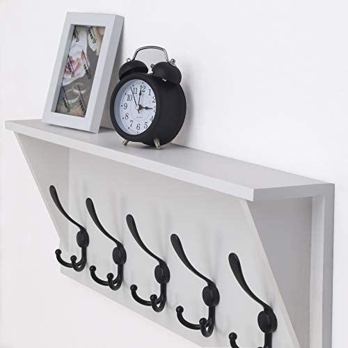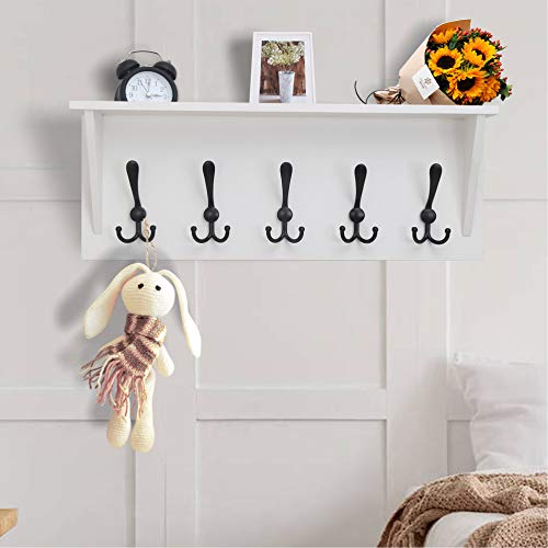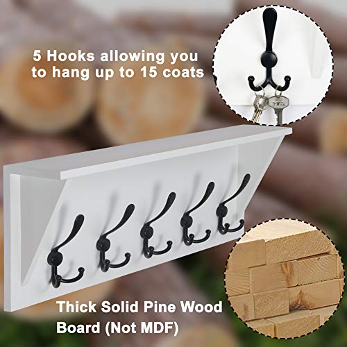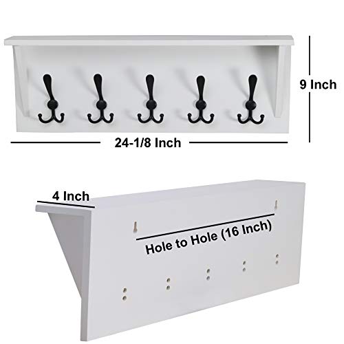 Dseap Wall Mounted Coat Rack Shelf - 24” Heavy Duty Entryway Wall Shelf with 5 Tri Hooks - Solid Pine Wood - for Entryway, Mudroom, Kitchen, Bathroom