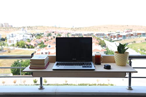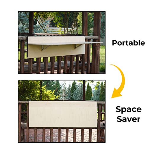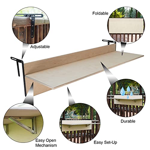 Balcony Bar Table for Railings, Balcony Folding Deck Table, Wooden Adjustable Hanging Deck Table for Patio, Apartment, Garden (Walnut, 59" L x 11.8" W)