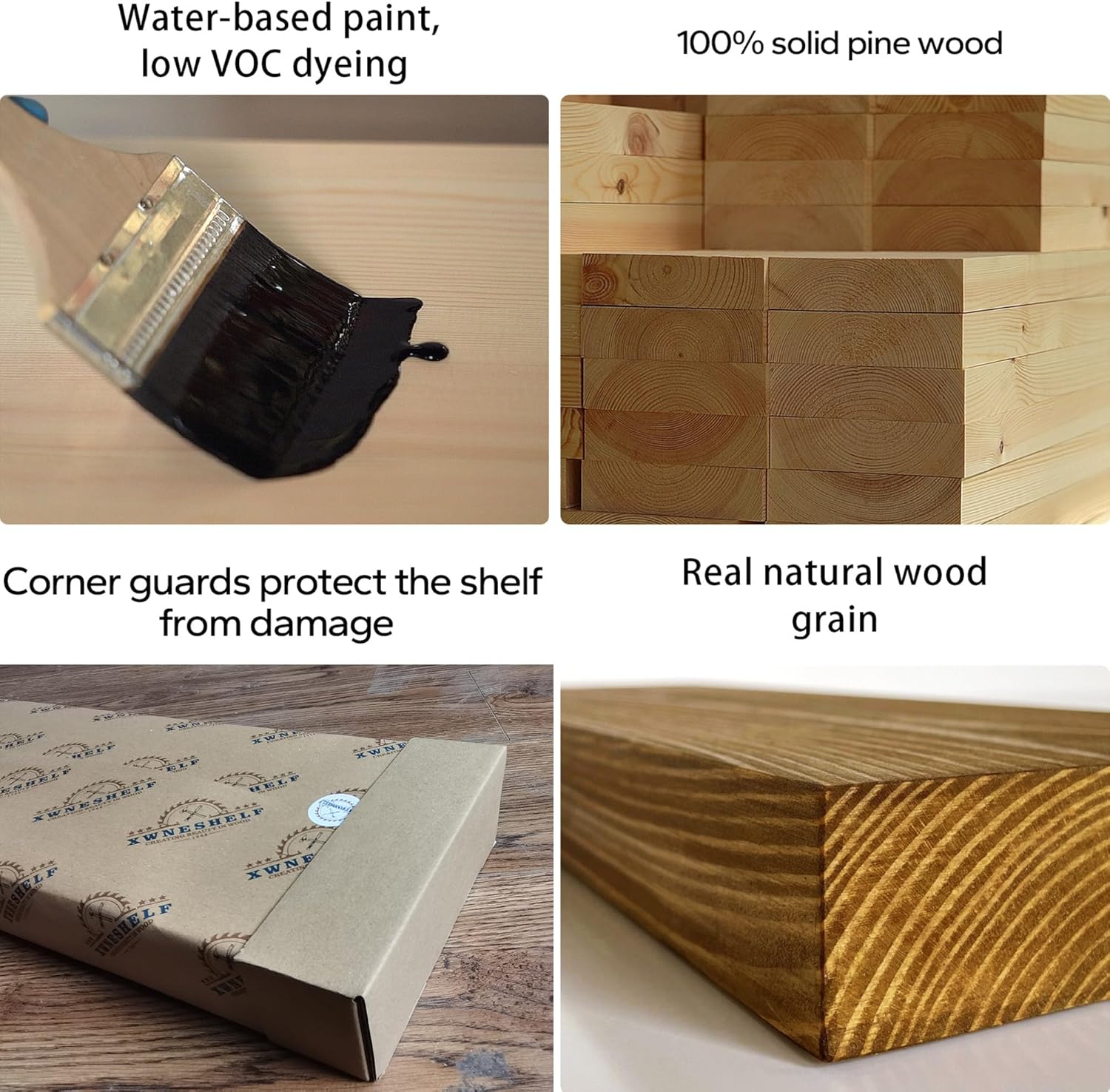 Wood Floating Shelves,16 inch Rustic Wood Wall Shelves for Bathroom Living Room Bedroom Kitchen Farmhouse Laundry Room Set of 2,Handmade-Thickened Wall Shelf,Oak Color