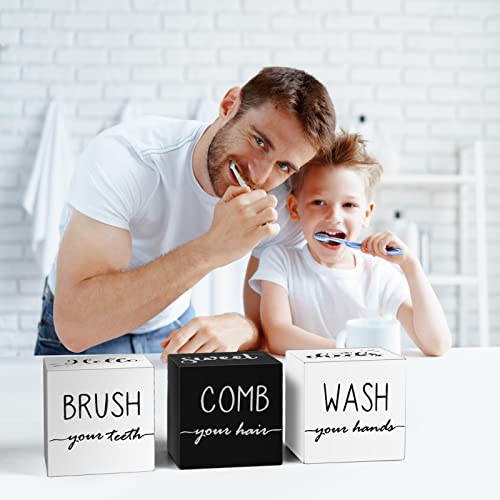 Farmhouse Set of 3 for Bathroom Decor Funny Bathroom Sign with Unique Sayings Rustic Wooden Bathroom Shelf Decor Cute Black and White Bathroom Decor For The Guest Restroom Home Decoration