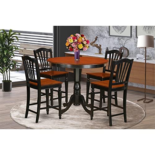 East West Furniture TRCH5-BLK-W 5 Piece Counter Height Pub Set Includes a Round Table and 4 Kitchen Dining Chairs, 42x42 Inch, Black & Cherry