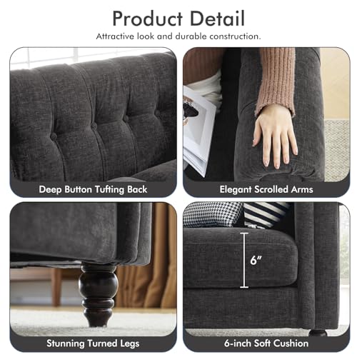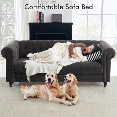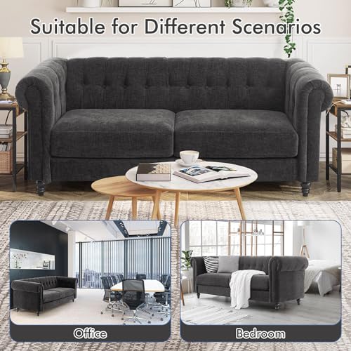 ELUCHANG 81" Oversized Couches for Living Room, Chesterfield Sofa with Rolled Arms, No Sagging Loveseat Deep Seat Sofa Tufted Sofa, Modern 3 Seater Sofa Couch for Bedroom, Apartment, Chenille, Blue