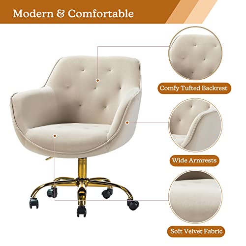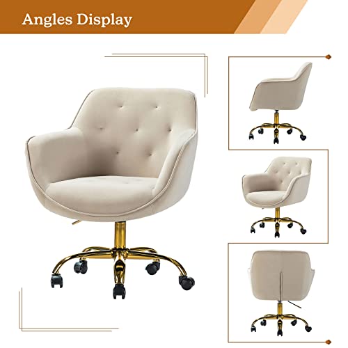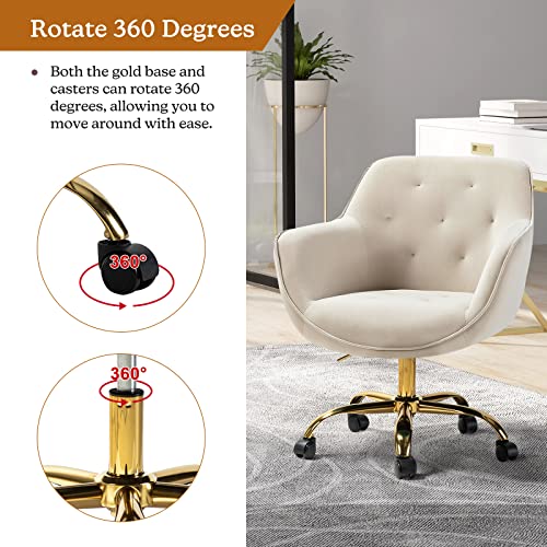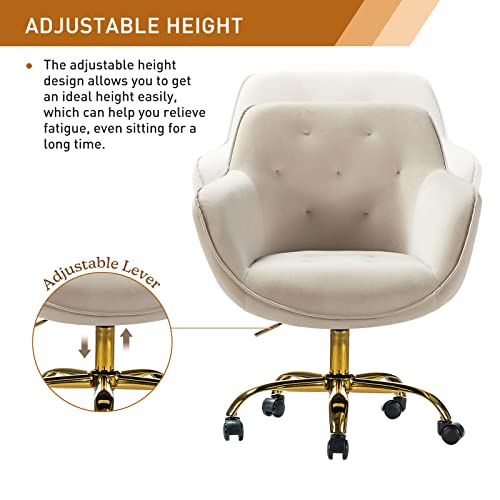 HULALA HOME Velvet Office Chair with Gold Base, Modern Cute Mid-Back Desk Chair, Adjustable Swivel Task Chair for Bedroom, Living Room, Bedroom, Study, Navy