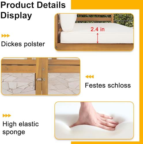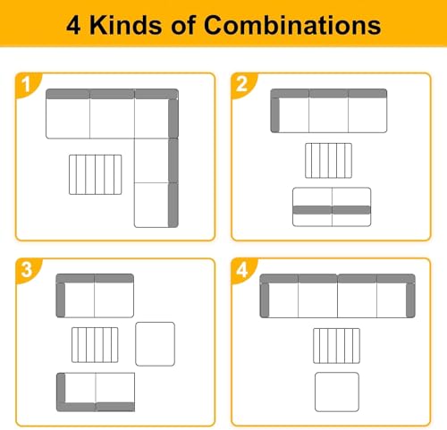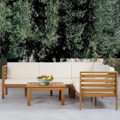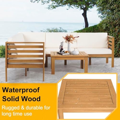 PayLessHere Patio Furniture 4 Pieces Outdoor Furniture L-Shaped Sectional Sofa Conversation Sets Patio Corner Set with Coffee Table Acacia Wood and Waterproof Cushion (Khaki)