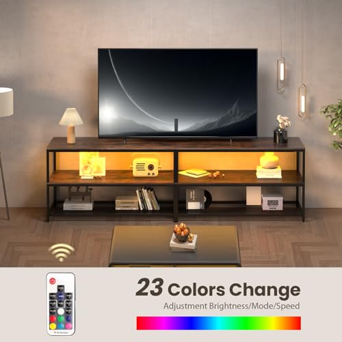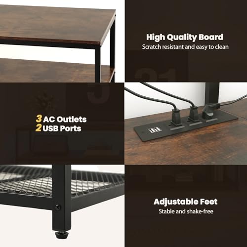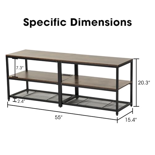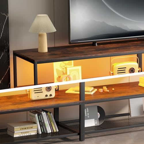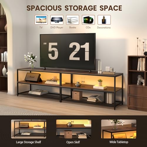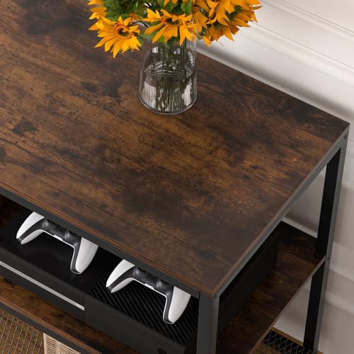 63 Inch Console Table with Outlets,Low Sofa Table Behind Couch Table with Storage Shelves,Industrial Hallway Entryway Table with LED Strips for Living Room, 3 Tier Bookshelf (Black)