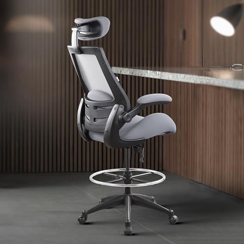 BOLISS 400lbs High-Back Mesh Ergonomic Drafting Chair,Tall Office Chair, Standing Desk Chair,Adjustable Headrest,Double Seat Cushion,with Flip-Up Arms,Lumbar Support Swivel Computer Task Chair -Black