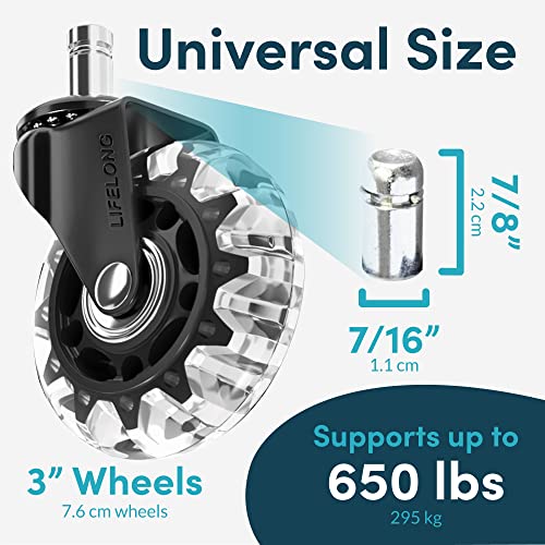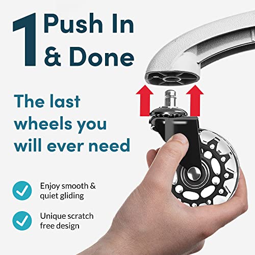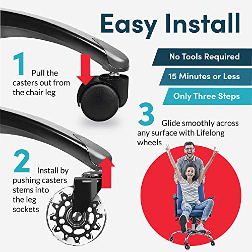 Lifelong Office Chair Dual Wheels Replacement Rubber Chair Casters for Hardwood Floors and Carpet, Set of 5, Heavy Duty Casters for Chairs to Replace Office Chair Mats - Fits 98%