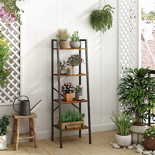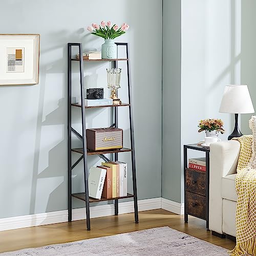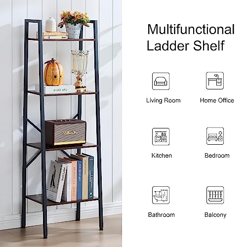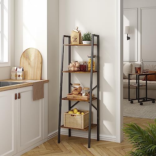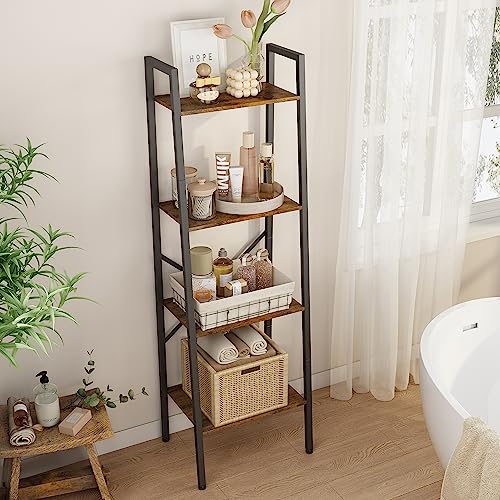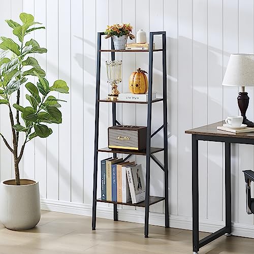 Hoctieon 5-Tier Industrial Ladder Bookshelf, Narrow Ladder Shelf, Tall Standing Bookshelf, Skinny Open Ladder Shelf, for Living Room, Home Office, Kitchen, Bedroom, Metal Frame, Greige