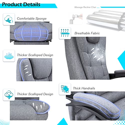 YODOLLA 7 Points Massage Executive Office Chair with Heat Function, Home Office Chair Reclining Desk Chair PU Leather Massage Office Chair, Grey