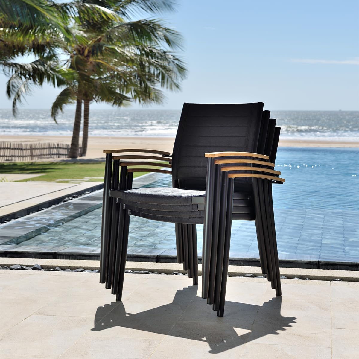 Brampton Lerus 5-Piece Wood Patio Furniture Certified Teak | Ideal for Backyard, Outside Table and Chairs, Round Outdoor Dining Set for 4, Black