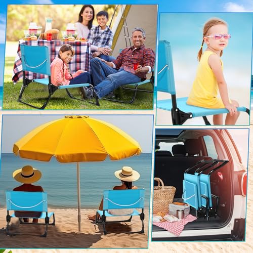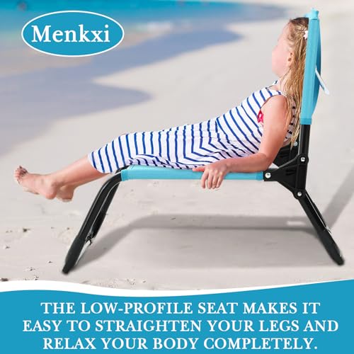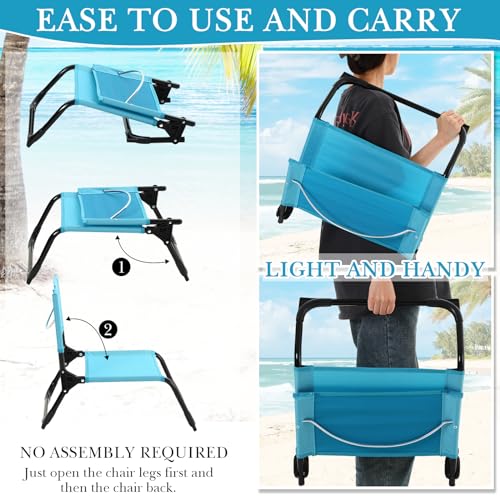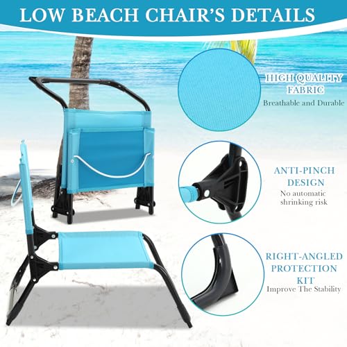 4 Pcs Lightweight Foldable Beach Chair for Adults Stable Low Beach Chair Sand Chair Portable Camping Chair for Outdoor Camping Beach Picnic Support 300lbs(Sky Blue, Striped Style)
