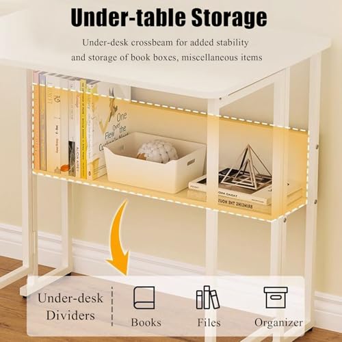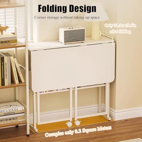 Mobile Foldable Desk with Wheels, Small Spaces Rolling Computer Desk, Portable Saves Space Table for Office Bedroom Living Room, Easy Assembly(39.3x19.7in, White)