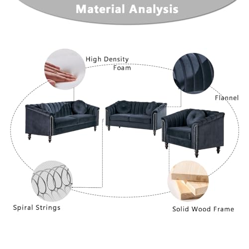 Living Room Furniture Set, Sectional Couches, Chesterfield Sofa Set, Fabric Loveseat Couch Set, 2-Piece Modern Sofa Set with Toss Pillows for Living Room/Bedroom/Office (Grey, Sofa+Loveseat)