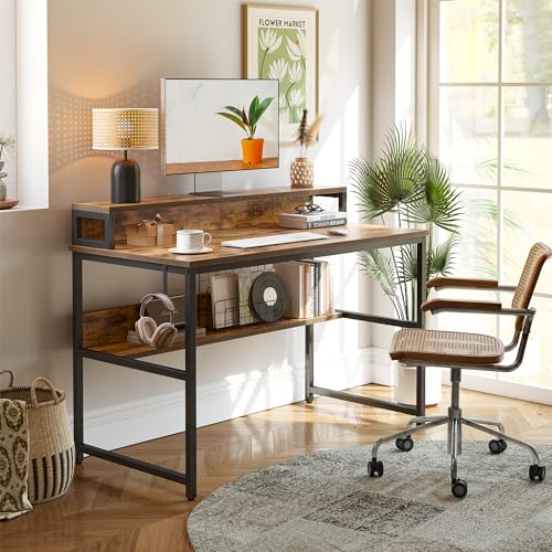 Cubiker Computer Home Office Desk, 47" Small Desk Table with Storage Shelf and Bookshelf, Study Writing Table Modern Simple Style Space Saving Design, Black