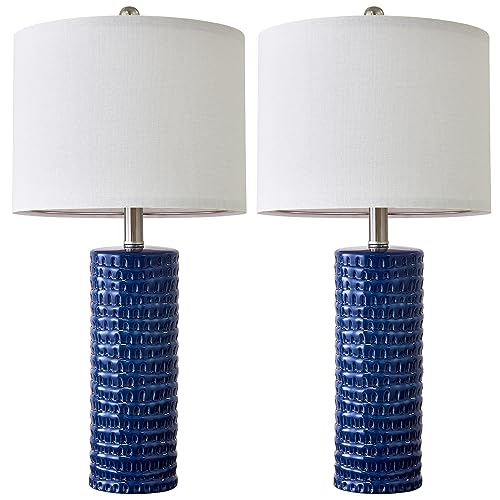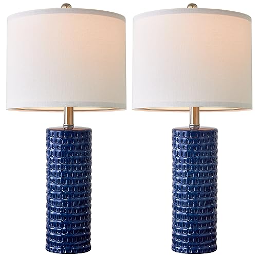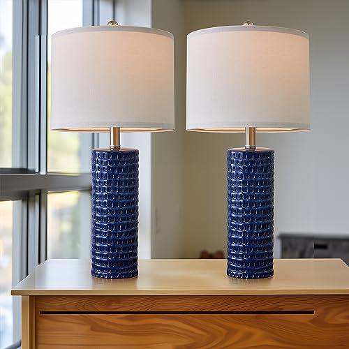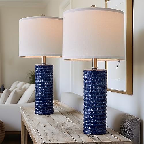 PORTRES 24" Farmhouse Ceramic Table Lamp Set of 2 for Bedroom Living Room White Desk Decor Bedside Lamps for Study Room Office Dorm Modern Accent Nightstand Lamp End Table Lamps