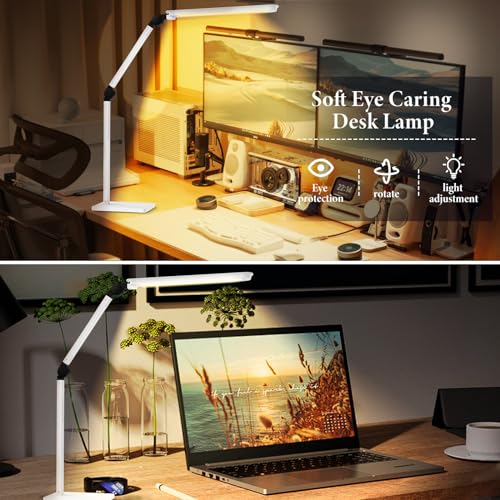 LED Desk Lamp for Home Office,Creative Touch Reading Light, with Memory Dual Light and Adjustable Swing Arm,15W 4 CCT Eye-Care Modes & 4 Brightness Levels Table Lamp with USB Charging Ports-Black