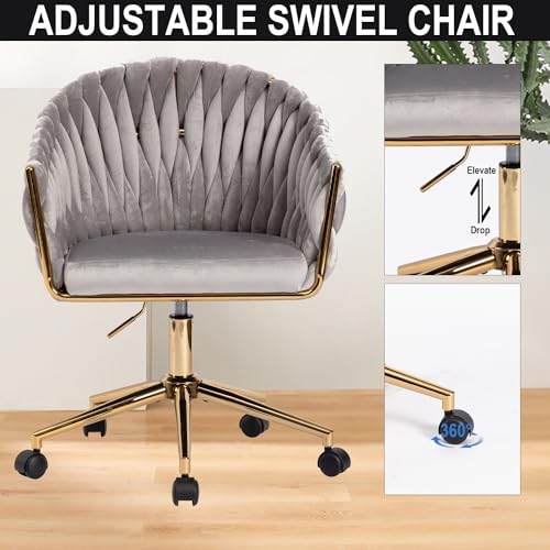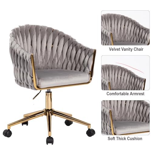 Velvet Office Chair, Vanity Chairs with Wheels, 360° Swivel Velvet Home Office Desk Chair, Accent Chair Makeup Vanity Chair for Bedroom, Living Room(Grey)